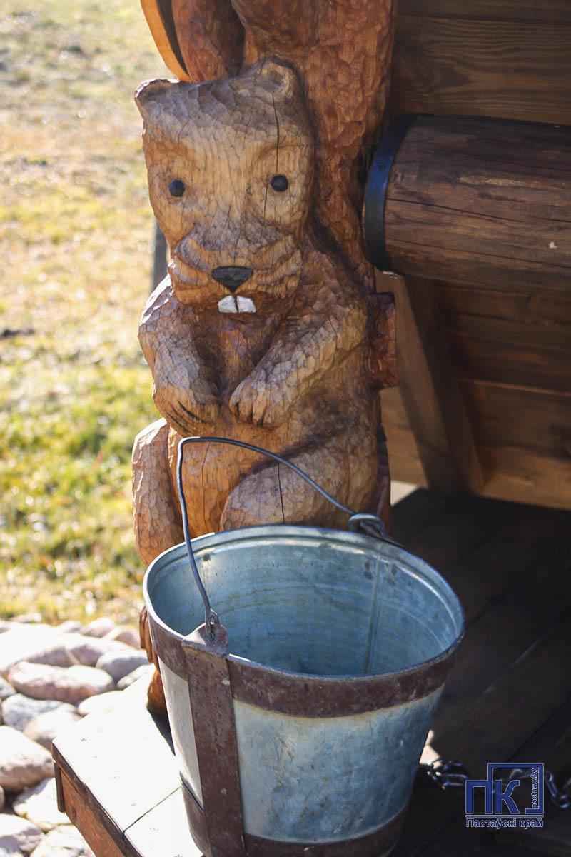 З вядучым інжынерам па паляўнічай гаспадарцы Юрыем Ракелем адпраўляемся ў невялікае азнаямляльнае падарожжа па двух лясгасаўскіх турыстычных аб’ектах. Першы з іх знаходзіцца ва ўлонні дзікай прыроды за вёскай Пруднікі, за 17 км ад Пастаў (у бок Варапаева). Тут ціха, прыгожа, атмасферна — так, як любяць стомленыя гарадской мітуснёй кліенты.