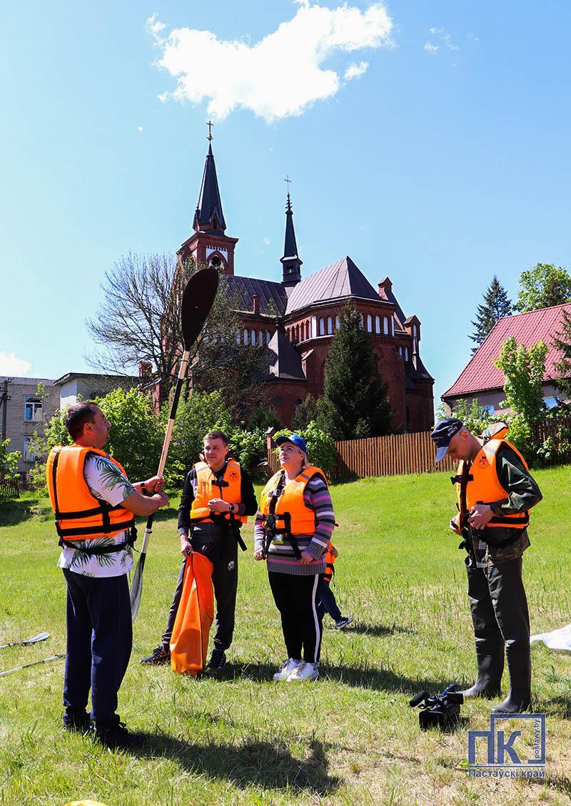 Для размінкі выплываем на «вялікую» ваду паміж Домам рамёстваў «Стары млын» і касцёлам. Спачатку баішся паварухнуцца і думаеш выключна пра тое, каб не адкрыць плавальны сезон раней часу. Але хутка разумееш: думка, што ў каяку можна лёгка перакуліцца, усяго толькі стэрэатып. І пачынаеш атрымліваць асалоду ад таго, што ў цябе ёсць магчымасць паглядзець на іншыя Паставы — такія, якія ў сваім жыцці яшчэ ніколі не бачыў.