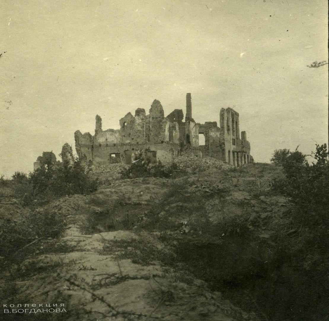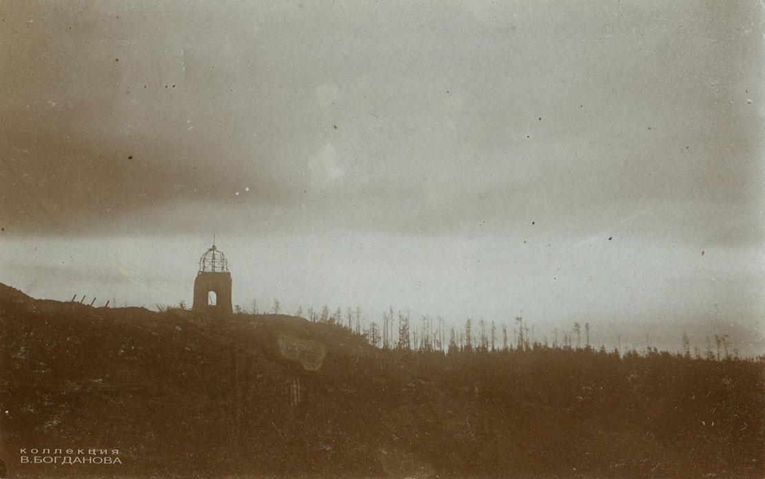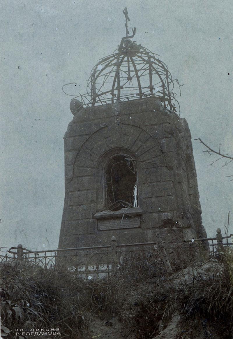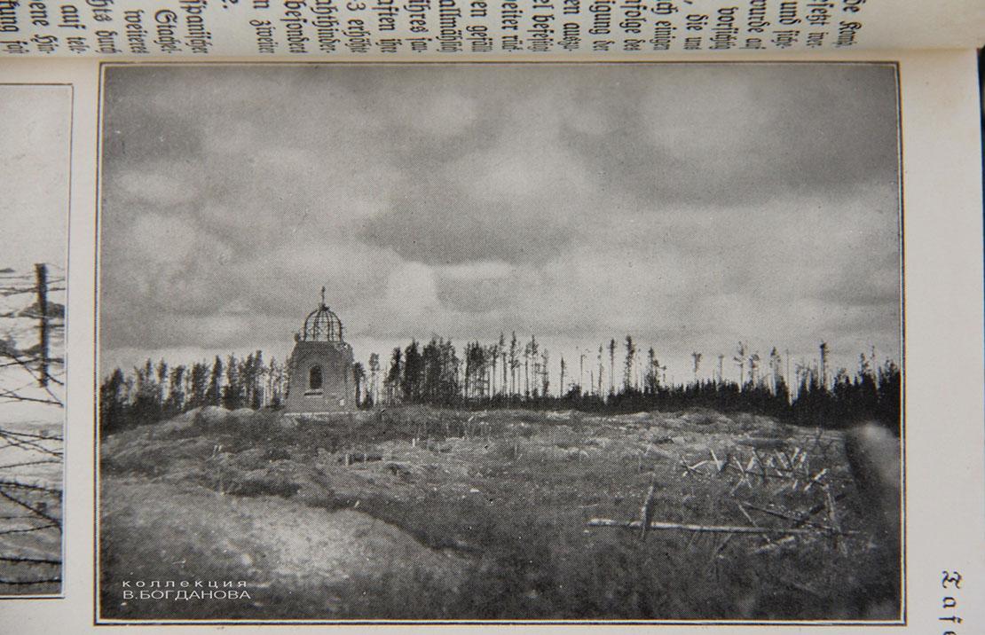 — На ўсіх здымках немцы падпісвалі пахавальню як Mauzoleum, — распавёў Уладзімір Анатольевіч. — У гады Першай сусветнай вайны немцы стварылі вакол яе магутны ўмацаваны вузел. Узгорак быў акружаны акопамі, пахавальня аказалася на самай яго вяршыне. Тое, што для апошняга прытулку князю выбралі такое высокае і бачнае здалёк месца, па волі гісторыі адыграла дрэнную ролю. Пахавальня стала не толькі зручным укрыццём для нямецкіх салдат-назіральнікаў, але і выдатнай мішэнню і арыенцірам для рускай артылерыі. Вясной 1916 года тут сур’ёзна «папрацавалі» рускія пушкі, ад баявых дзеянняў аб’ект вельмі моцна пацярпеў. Працэс яго разбурэння можна прасачыць па здымках у маёй калекцыі.