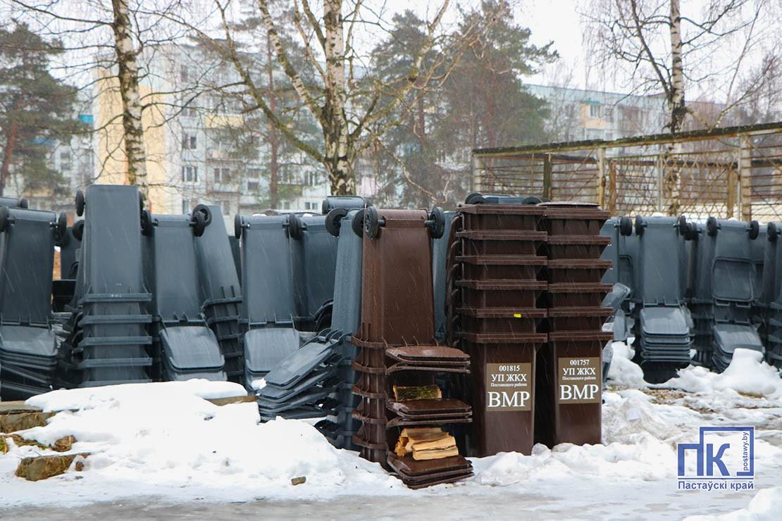 Сваіх гаспадароў чакаюць 2 тысячы новенькіх кантэйнераў умяшчальнасцю 120 літраў. Палова з іх разлічана на збор цвёрдых камунальных адходаў, другая — на збор другасных матэрыяльных рэсурсаў.