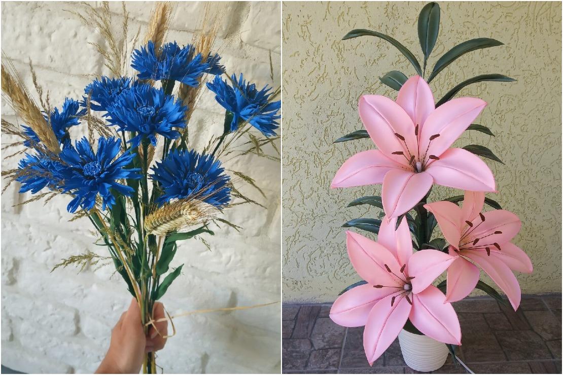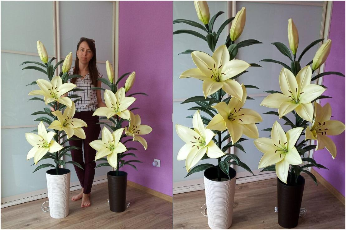 Але хіба лілеі не могуць радаваць вока круглы год? Калі творча падысці да справы, то яшчэ як могуць! Дзякуючы навучальным відэа на YouTube Кацярына навучылася рабіць незвычайныя па памеры і прыгажосці кветкі, якія здалёк ад жывых не адрозніш.