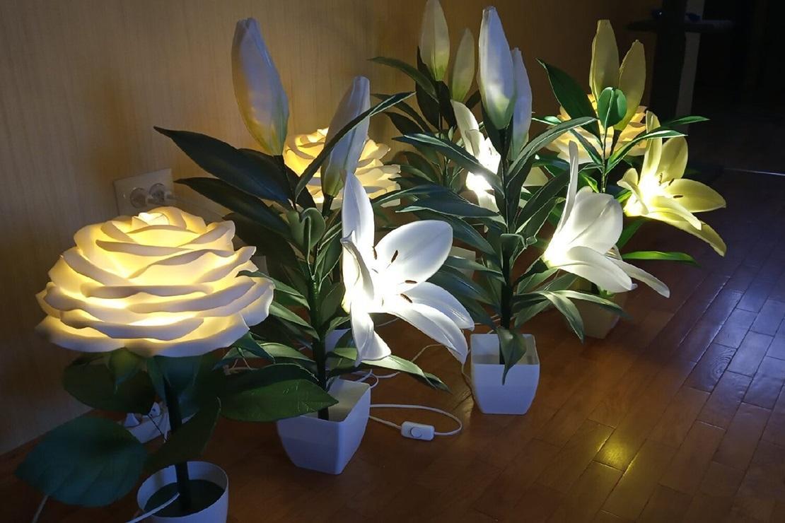 — Для вырабу гэтых кветак выкарыстоўваю сучасны высокатэхналагічны матэрыял — ізалон, — тлумачыла Кацярына Юркова. — Ён знайшоў шырокае прымяненне як у будаўніцтве (для ўцяплення і гідраізаляцыі пабудоў), так і ў стварэнні ўпрыгажэнняў і дэкаратыўных вырабаў. Сам па сабе рулон ізалона таўшчэзны, але матэрыял гэты не «капрызны», а падатлівы, з яго можна зрабіць вытанчаныя вырабы. Праўда, для гэтага ў «арсенале» павінен быць зусім не жаночы набор інструментаў: пласкагубцы, паяльнік, будаўнічы фен… Па жаданні такую кветку можна зрабіць з падсветкай, і яна будзе выкарыстоўвацца як лямпа. На стварэнне адной работы патрэбна некалькі дзён.