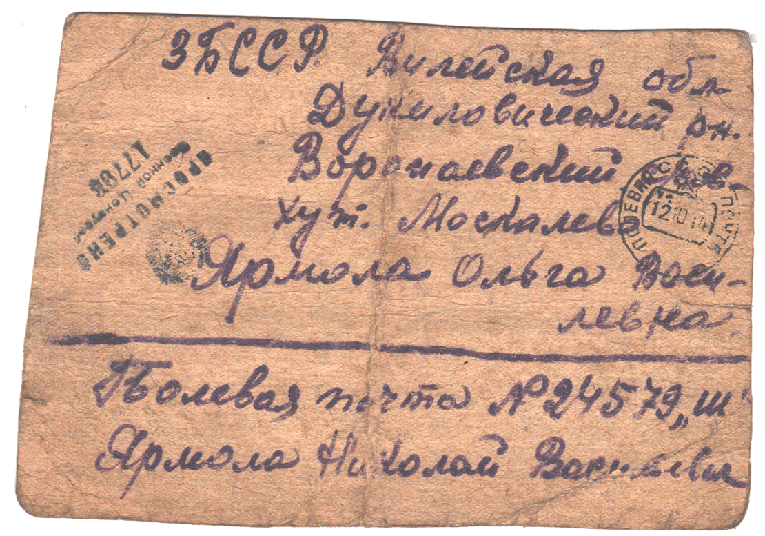 Што здарылася з аўтарам пісьма? А з яго саслужыўцамі? Адказаў на гэтыя пытанні няма, але ёсць разуменне: салдаты, пакінуўшы свае родныя хаты, верылі ў Перамогу, марылі жывымі і здаровымі вярнуцца да сваіх блізкіх.