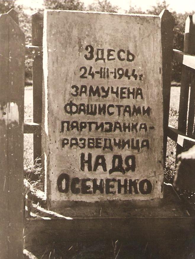 Пасля гібелі двух таварышаў Надзея Асяненка даставіла да бліжэйшага хутара трэцяга параненага — Бародзіча. Наказаўшы гаспадару адвезці яго да партызан, сама агнём затрымала гітлераўцаў. Пры спробе заскочыць на каня была параненая ў нагу і ўпала. Тым не менш змагла ўкрыцца за вуглом пабудовы і адтуль працягваць змагацца. Калі ў Надзею трапіла яшчэ адна куля, яна страціла прытомнасць. Пасля здзекаў фашысты дабілі параненую партызанку.