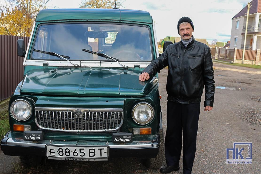 На гэта новаму ўласніку аўтамабіля спатрэбіліся ажно тры гады. Купіў у 2016 годзе, аднак ездзіць на ім змог толькі ў 2019-м. Паставіў новы матор, які працуе не на бензіне, а на дызельным паліве, памяняў брызентавы верх на металічны, адрэстаўраваў усё тое, што не задавальняла. Але, каб зарэгістраваць у ДАІ пераабсталяваную машыну, спатрэбілася спачатку прадставіць яе на даследаванне спецыялістам Беларускага нацыянальнага тэхнічнага ўніверсітэта. Яны выдалі станоўчае заключэнне.
