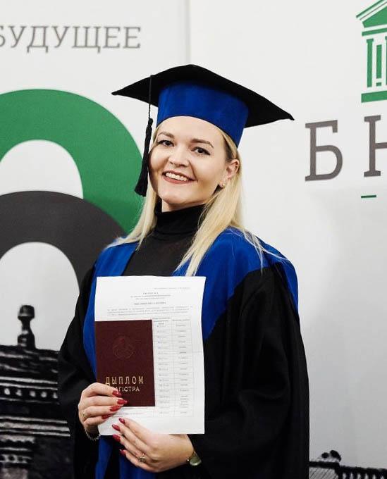 — Займацца навуковай дзейнасцю для мяне найлепшая форма самаразвіцця, — прызналася магістр эканамічных навук. — Маю больш за 10 навуковых публікацый, у тым ліку ў міжнародных навукова-практычных часопісах. Удзельнічаю ў розных канферэнцыях, алімпіядах, конкурсах. З’яўляюся пераможцай рэспубліканскага конкурсу навуковых работ сярод студэнтаў-магістрантаў. Увайшла ў лік лаўрэатаў міжнароднага конкурсу, які праходзіў на базе Алтайскага дзяржуніверсітэта. Гэтым летам перамагла ў міжнародным конкурсе «Найлепшы малады вучоны СНД», які праходзіў у Нур-Султане (Казахстан).