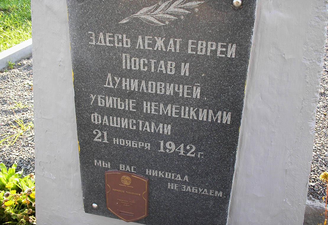 У той жа дзень, 21 лістапада, нацысты забілі і насельнікаў гета ў Дунілавічах. Загінулі не толькі людзі, але і непаўторная самабытнасць народа з яго малітвамі, традыцыямі, святамі, водарам смачных булачак, пранізлівымі гукамі рытуальнага шафара. У канцы снежня 1942 года былі забітыя і лынтупскія яўрэі. Да вайны жылі яўрэі і ў Камаях. Дакладна невядома, дзе яны знаходзіліся ў час вайны: у пастаўскім гета альбо ў Кабыльніку. Аднак відавочна, што ўсе яны загінулі, бо пасля Перамогі ніхто з іх не вярнуўся ў роднае мястэчка. Пра тое, што яны тут жылі, напамінаюць толькі даваенныя могілкі, адноўленыя камайцамі пад кіраўніцтвам ксяндза Яцэка Хутмана.