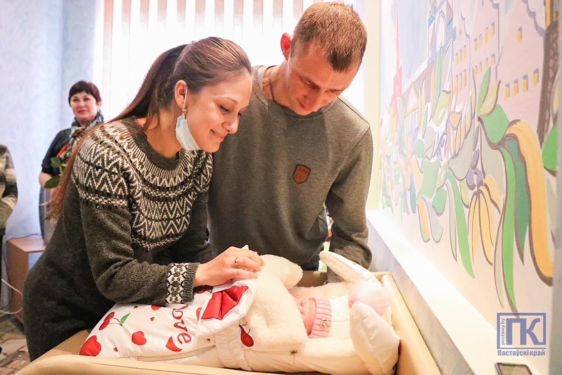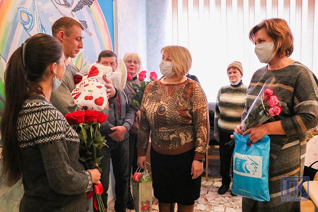 Поздравить счастливых родителей, вручить им подарки и цветы пришли и представители районных организаций: РОО «Белая Русь» — Павел Трава и Инна Кравчук, Белорусского союза женщин — Наталья Седюкевич и Марина Наганович, Белорусского общества Красного Креста — Татьяна Шахова. Не остались в стороне и медики. От имени коллектива ЦРБ радость события с родителями разделили заместитель главврача по медчасти Александр Сварцевич, заведующая родильным отделением Светлана Новикова и врач педиатр-неонатолог Андрей Девгуть.