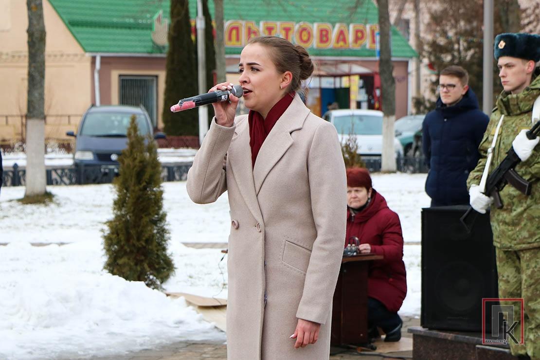 — Мужнасць, гонар, адвага і гераізм… Гэта не проста словы, а спрадвечныя маральныя каштоўнасці беларускага народа, — сцвярджае, нібы чытае сугучныя прысутным думкі, вядучая мерапрыемства Вольга Лойка. — 2022-і абвешчаны ў нашай краіне Годам гістарычнай памяці. Давайце ўзгадаем тых, хто стаў прыкладам мужнасці і стойкасці. Уславім тых, хто, нягледзячы на ўсе выпрабаванні і перашкоды, адстаяў нашу свабоду і незалежнасць. Недарэмна спяваецца ў песні: «абавязак у салдата адзін — да перамогі змагацца за мір»…
