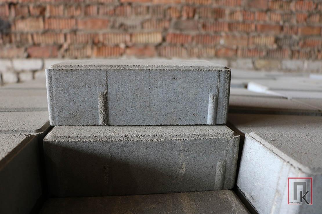 — В бетоносмесителе замешиваем песок, цемент, воду и пластификатор для улучшения качества раствора, — рассказывают и показывают технологию производства рабочие по благоустройству Николай Карасик и Сергей Коптюхов. — Готовый раствор автоматически подаётся транспортёром в бункер, а из него — в матрицу. Там придавливается и прессуется с помощью вибратора. Затем отформованные изделия вынимаем и отправляем сушиться на стеллажи, а через сутки укладываем на поддон, где они доходят до нужной кондиции. Для вылежки требуется 28 дней.
