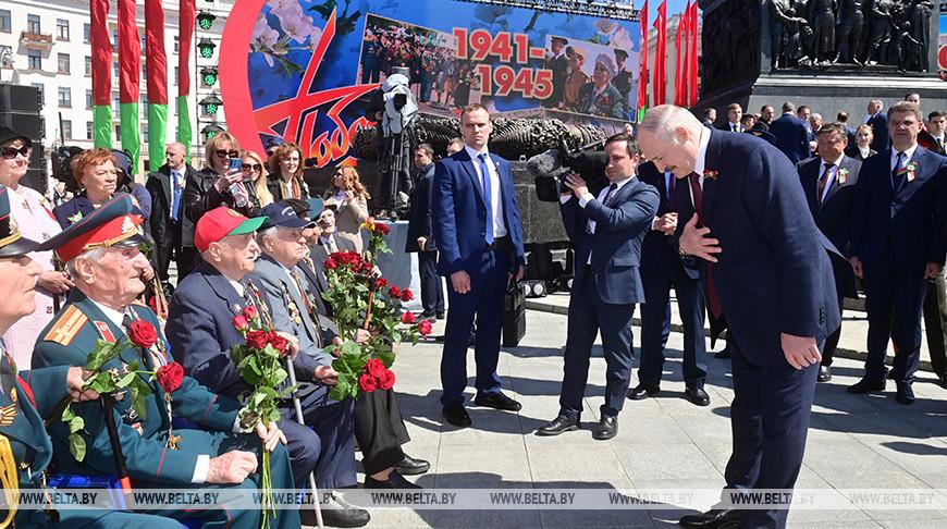 «Поздравляю вас с Днем Великой Победы. Победы, которая сохранила белорусскую нацию и предопределила путь развития всех поколений белорусов, стала неотъемлемой частью общей национальной идеи, — сказал Александр Лукашенко. — И сегодня у священного Вечного огня мы преклоняемся перед нашими ветеранами, отдаем дань памяти тем, кто погиб, защищая наше право жить. Жить свободно на родной земле и в своем государстве».