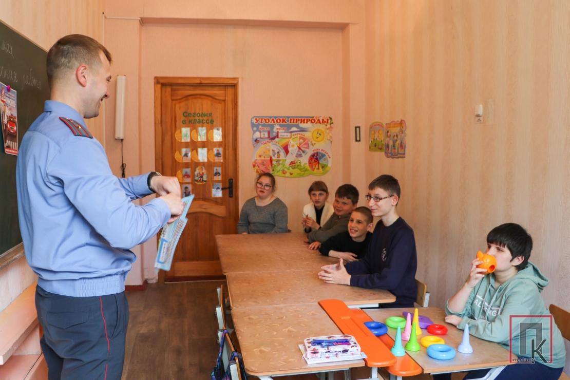 В рамках акции «Внимание, дети!» Александр Викторович напомнил особенным детям о важности соблюдения правил дорожного движения, проверил, знают ли ребята основные дорожные знаки. Мальчишки и девчонки ответили верно на вопросы и смогли задать интересующие вопросы.