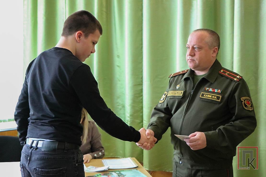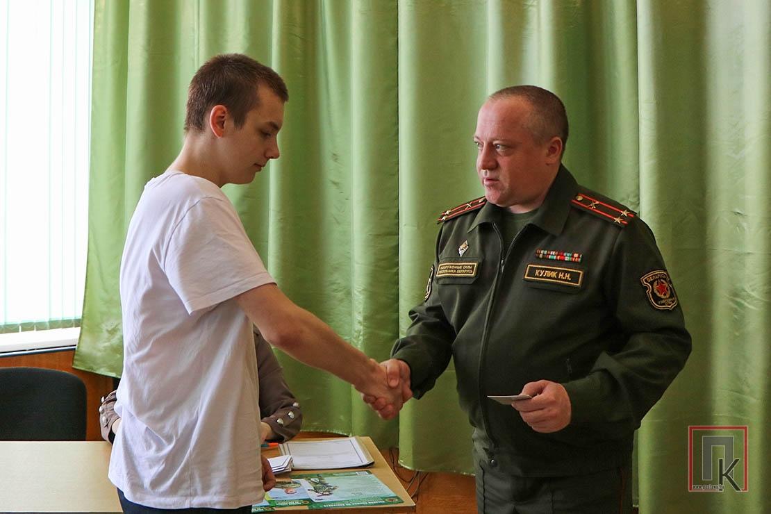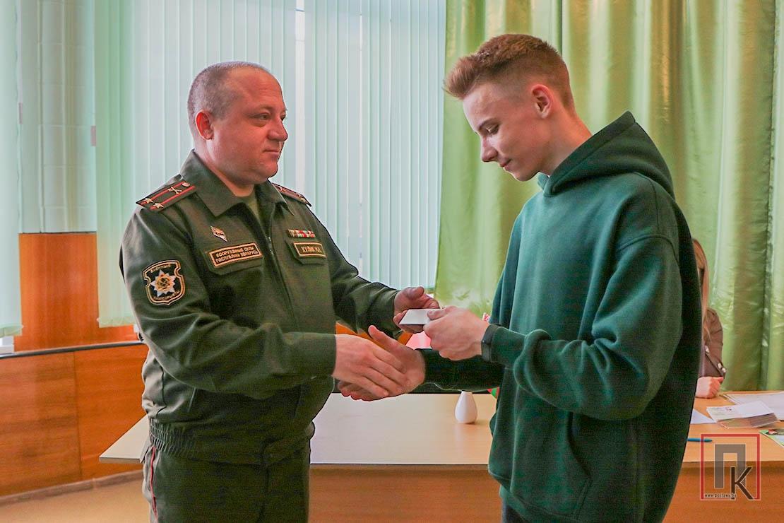 Под аплодисменты ровесников и администрации школы военный комиссар района Николай Кулик вручил юношам удостоверения призывника. С этого года документ имеет новый образец — выдаётся на номерных бланках строгой отчётности, как и военный билет.