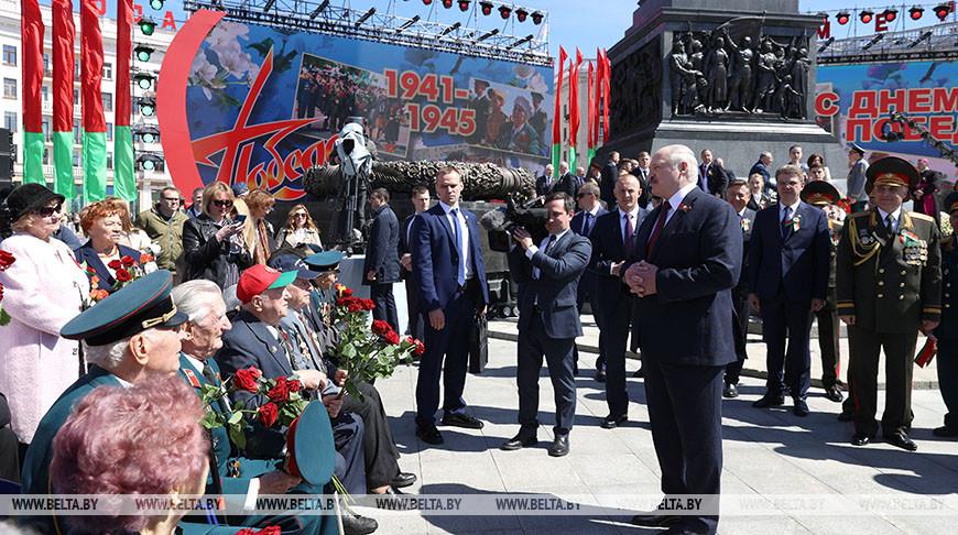 Президент Беларуси Александр Лукашенко после завершения на площади Победы в Минске торжественного мероприятия тепло пообщался с ветеранами, передает корреспондент БЕЛТА.
