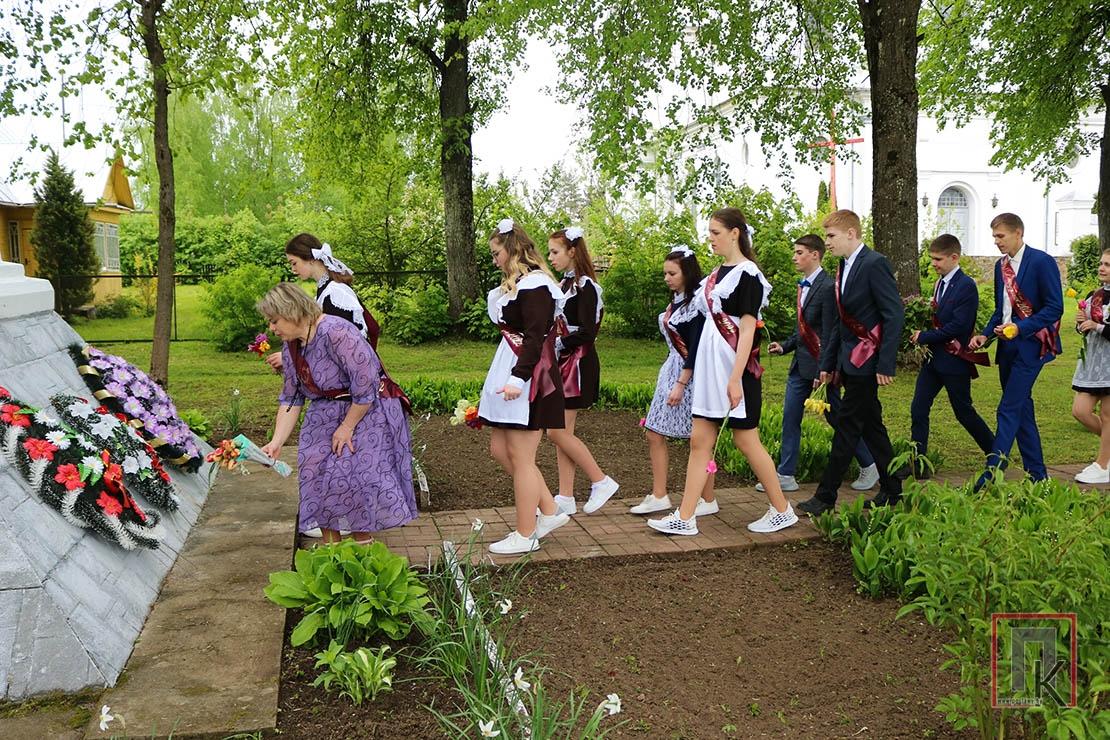 Ну а кульмінацыяй лінейкі стаў вальс выпускнікоў, пасля якога празвінеў апошні званок. Яго далі Даніэль Станкевіч і Таня Баран. Затым па традыцыі 11-класнікі разам з класным кіраўніком накіраваліся да брацкай магілы воінаў — вызваліцеляў Лынтуп, каб ускласці да яе кветкі.