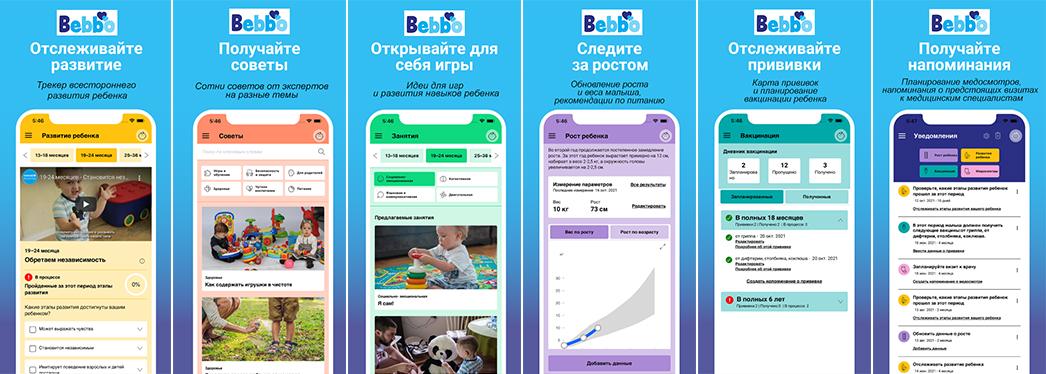 Каждый день с помощью Bebbo можно следить за прогрессом ребенка, стимулировать развитие в процессе игры, получать подсказки от экспертов, вести учет медосмотров и прививок, узнавать о методах улучшения языковых, моторных и социальных навыков ребенка. И очень важно – пользоваться советами насчет заботы о своем собственном благополучии.