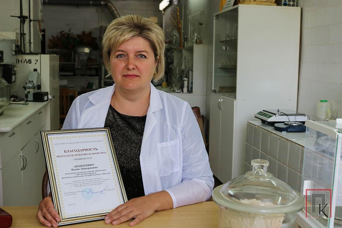 Алена Апанасевіч пра кар’ерны рост ніколі не задумвалася. Працавала кантралёрам харчовай прадукцыі на камбінаце кааператыўнай прамысловасці, спраўлялася са сваімі абавязкамі, і гэта яе задавальняла. Але дачасна абарвалася жыццё начальніка вытворчай лабараторыі Пастаўскага філіяла Віцебскага аблспажыўтаварыства Святланы Чалей, і Алене давялося заступіць на яе месца.