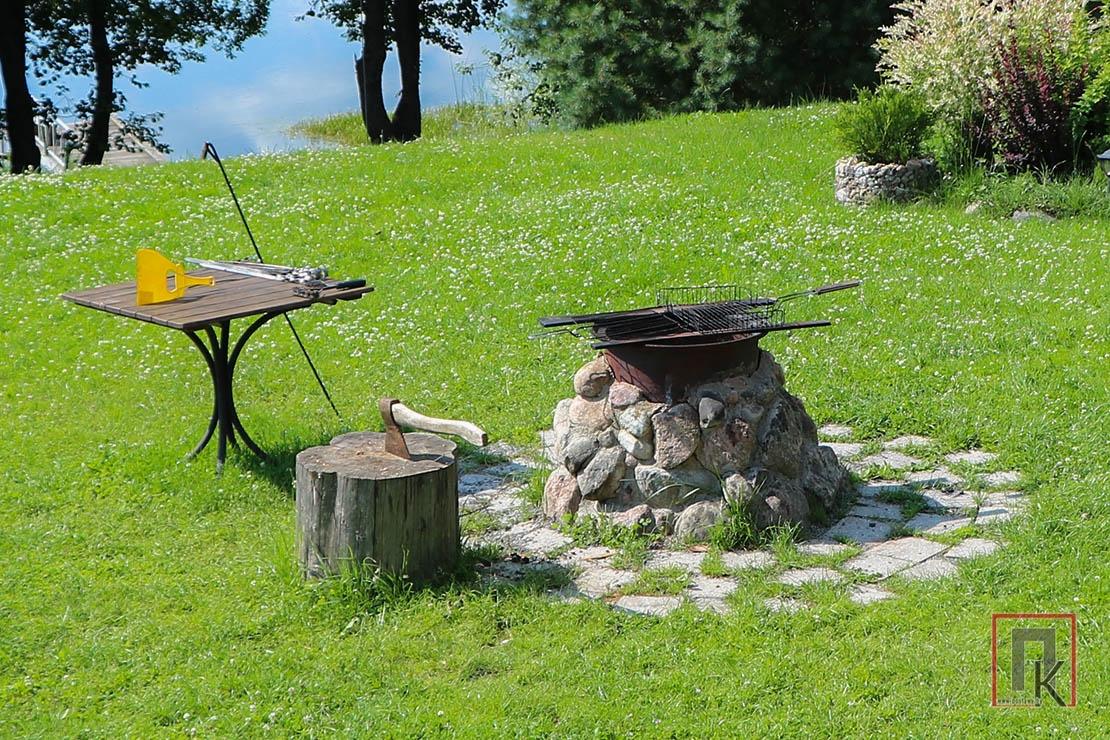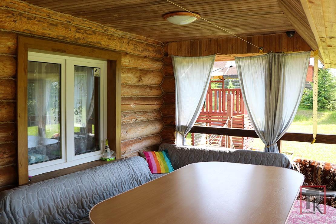 Пачала разглядацца… Немалы дагледжаны ўчастак, які зліваецца з возерам Споры, шмат зеляніны і кветак, акуратна высаджаныя не толькі клумбы з дэкаратыўнымі раслінамі, але і цяперашні трэнд — клумба «кухонны садзік». На тэрыторыі ёсць спецыяльна адведзеныя месцы для прыгатавання шашлыка, забаўляльны «дзіцячы гарадок», тарзанка, а таксама пірс для аматараў водных працэдур. Сярод усяго гэтага хараства размясціўся дом з бярвення з утульнай летняй тэрасай і мансардай.