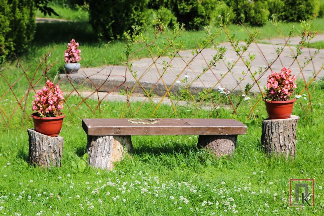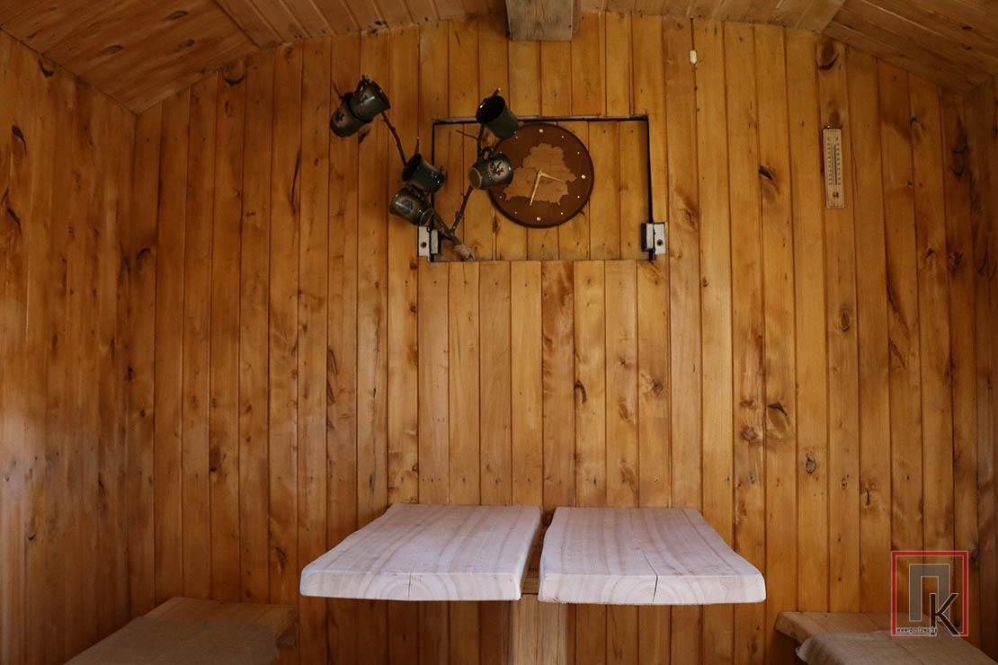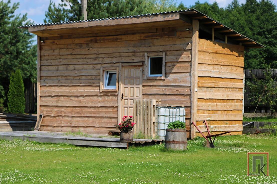 — Раней тут было голае поле, — расказваў Аляксандр. — Мае бацькі на гэтым месцы вырошчвалі бульбу. Потым склалі зруб і накрылі яго. У такім выглядзе ён прастаяў некалькі гадоў. «Нутранку», а таксама акультурванне ўчастка рабілі ўжо мы з Юляй. Яна ў мяне і архітэктар, і будаўнік. І дровы коле, і траву косіць! Цалкам замяніла мне напарніка-мужчыну. Адзін я тут нічога не зрабіў бы.