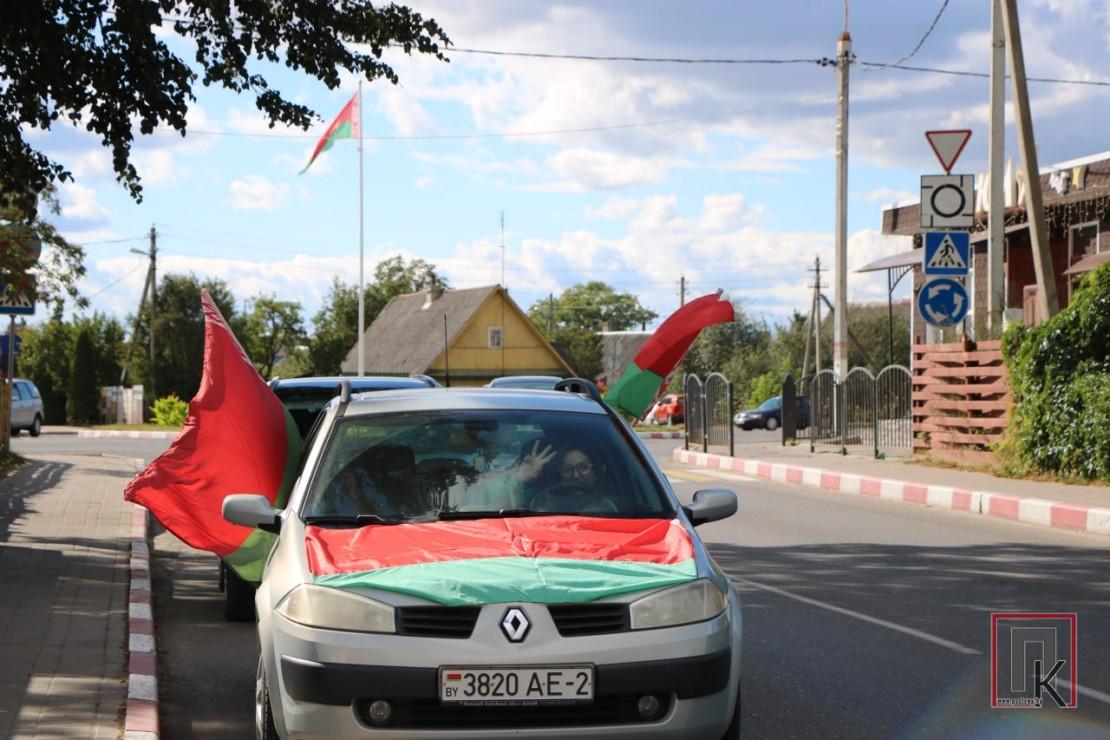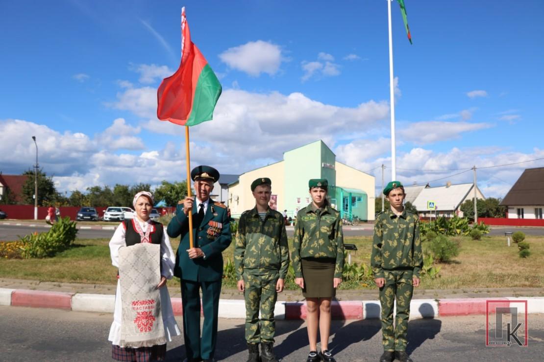 Самая відовішчная дзея адбылася пасля абеду на плошчы Камсамольскай. Тут сабраліся прадстаўнікі раённай улады і сілавых структур, грамадскасць і навучэнцы ўстаноў адукацыі райцэнтра. Усе разам выканалі Дзяржаўны гімн Беларусі, наталіліся цудоўнай канцэртнай праграмай, кожны гук і кожнае слова якой усхвалялі нашы дзяржаўныя сімвалы, сэрцу любую прыгажосць Радзімы і яе працавіты народ. Па крузе гонару былі пранесены сімвалы патрыятычнага марафону — Дзяржаўны флаг і льняны ручнік. Гэта місія выпала навучэнцам патрыятычнай групы СШ №4, старшыні пярвічнай арганізацыі ветэранаў-ракетчыкаў Юрыю Копасаву і кіраўніку народнага клуба «Майстры» Дома рамёстваў Алене Крывенькай.