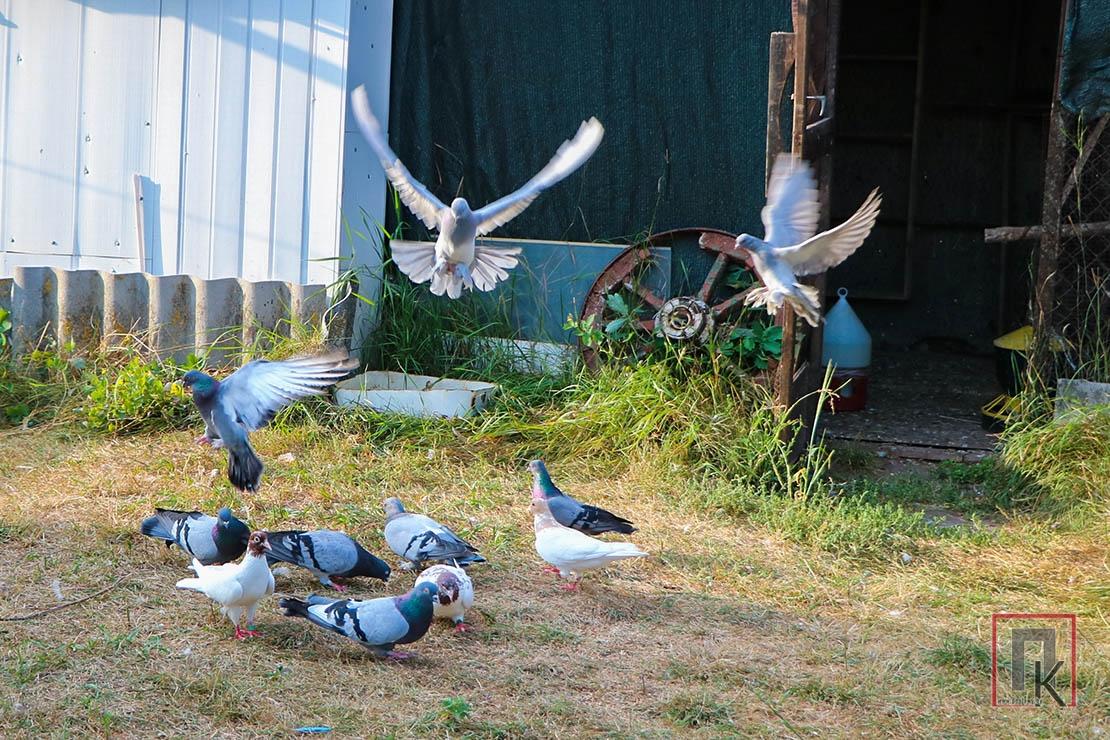 Во время нашего любования птицами хозяин рассказал мне о них много интересного. Например, что бойные голуби (именно этой породы у него более 30 птиц) получили своё название не за какие-то бойцовские качества, а за громкий бой крыльями во время полёта. А как мило звучат названия их видов: красно-, чёрно-, желтоголовые, жёлтые, лохмоногие!.. Оказывается, раньше он разводил другую породу — николаевских. Таких голубей держал, представьте себе, сотню! Но подаренная как-то Валентину одним из голубеводов самка оказалась больной, и через некоторое время все птицы, заразившись от неё, умерли.