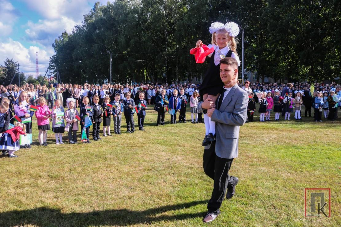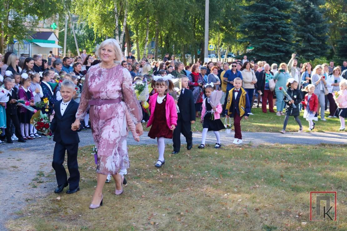 Першая школа — самая вялікая ў раёне. Сёлета яе парог пераступілі 820 дзяцей, у тым ліку 78 першакласнікаў. Менавіта на іх, пачаткоўцаў, была скіравана галоўная ўвага на лінейцы. Разам з традыцыйным падарункам ад Прэзідэнта краіны — кнігай «Беларусь — наша Радзіма» — першаклашкі атрымалі маленькія беларускія флагі і значкі з сімволікай школы. А яшчэ — сімвалічны ключ ад школьных дзвярэй, які перадалі старшакласнікі. Пасля таго, як празвінеў залівісты званок (яго далі навучэнцы 11 «Б» Якаў Карнілаў і 1 «В» Дамініка Русак) яны першымі ў суправаджэнні бацькоў і настаўнікаў адправіліся ў класы на свой першы ў жыцці ўрок. Ва ўсіх беларускіх школах гэта быў урок гісторыі на тэму «Гістарычная памяць — дарога ў будучыню!».