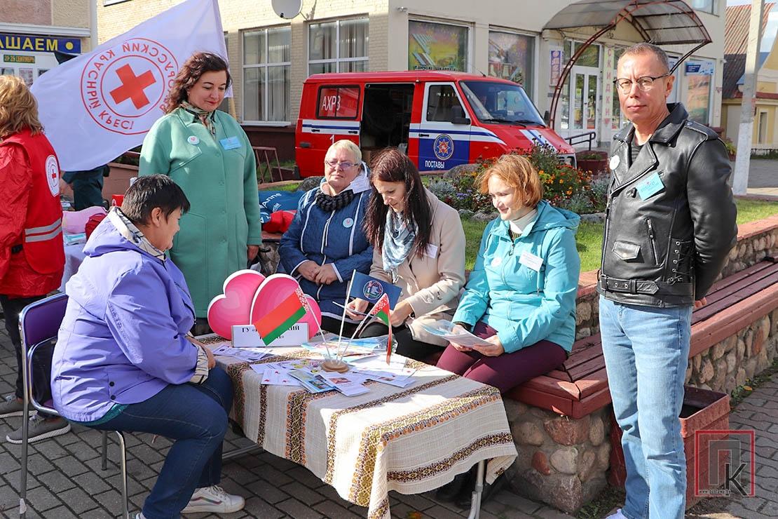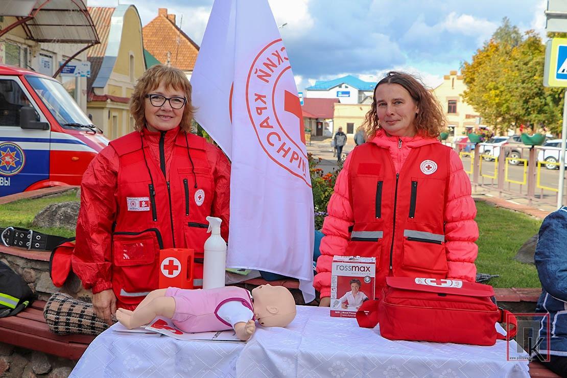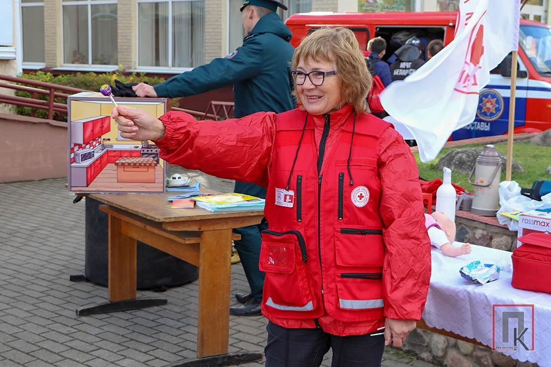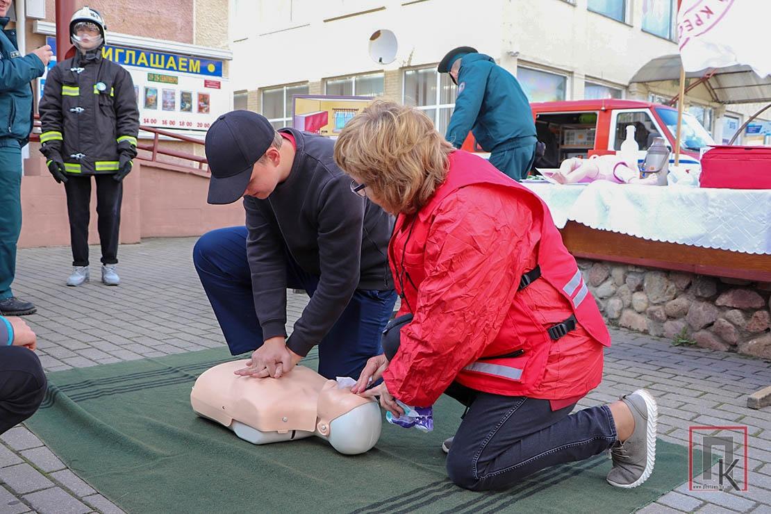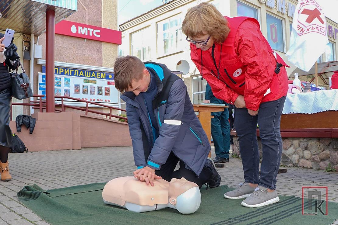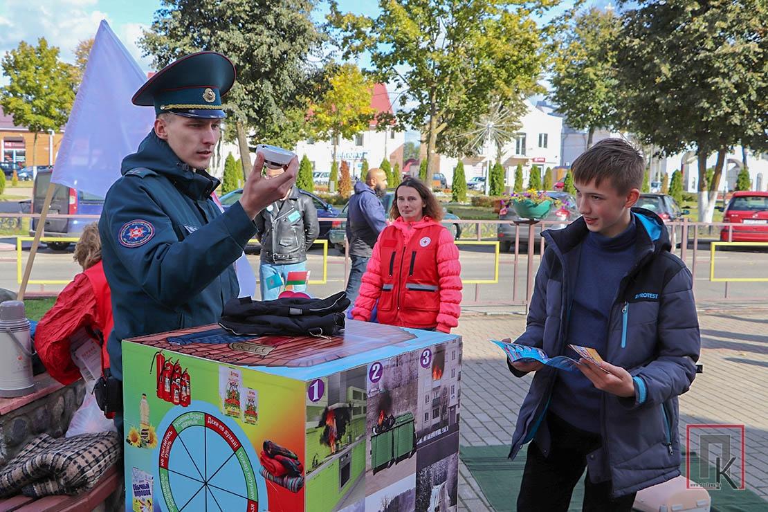 Возле кинотеатра «Родина» на центральной площади сотрудники МЧС, представители Красного Креста и ТЦСОН представили тематические площадки по изучению основ безопасности жизнедеятельности.