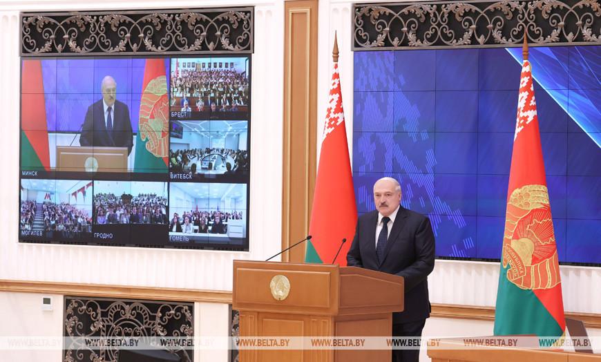 Александр Лукашенко в первую очередь поздравил учащихся и педагогов с началом нового учебного года. «Для многих из вас это год прощания со школой, а кто-то делает первый шаг к выбранной профессии или стоит на пороге своей трудовой деятельности. В любом случае в вашей жизни наступает переломный и судьбоносный период, очень важный период. Советую вам быть аккуратными, осторожными и очень внимательными — не только в своей жизни, но именно в эти переломные периоды, потому что можно наделать ошибок, которые потом будет очень трудно исправить», — сказал Президент.