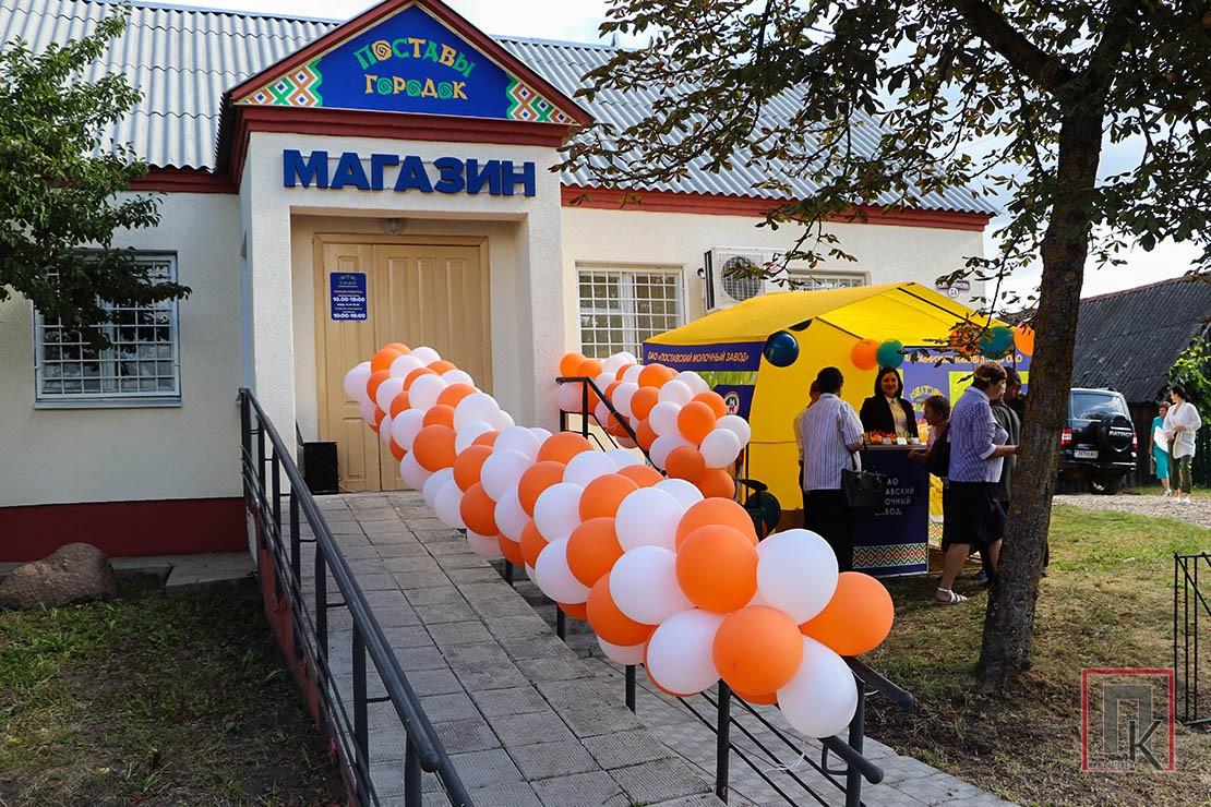 Гэта адбылося 30 жніўня. На адкрыццё сабраліся вяскоўцы, прыехалі прадстаўнікі завода на чале з дырэктарам Канстанцінам Гайлеўскім. Ён і старшыня райвыканкама Сяргей Чэпік перад уваходам у новы магазін перарэзалі чырвоную стужку і запрасілі прысутных па пакупкі.