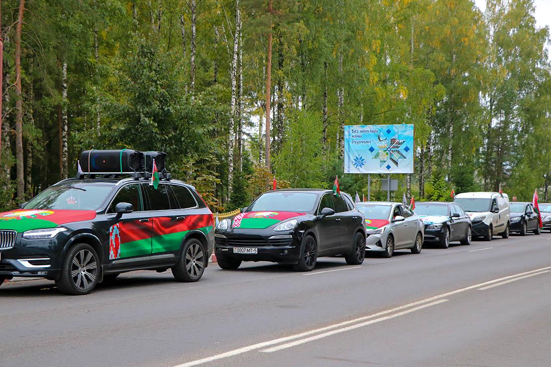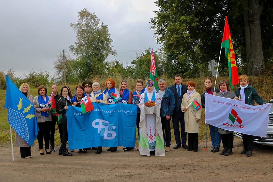 Удзельнікаў аўтапрабегу, арганізаванага Рэспубліканскім грамадскім аб’яднаннем «Патрыёты Беларусі» сумесна з Федэрацыяй прафсаюзаў Беларусі, дэлегацыя нашага раёна сустракала у Казянах і, як прынята спрадвеку, з караваем. Аб’яднаўшыся ў картэж, упрыгожаны дзяржаўнай сімволікай, госці і гаспадары накіраваліся на вуліцу Чырвонаармейскую ў Паставы. Тут, ля брацкай магілы, адбыўся мітынг.