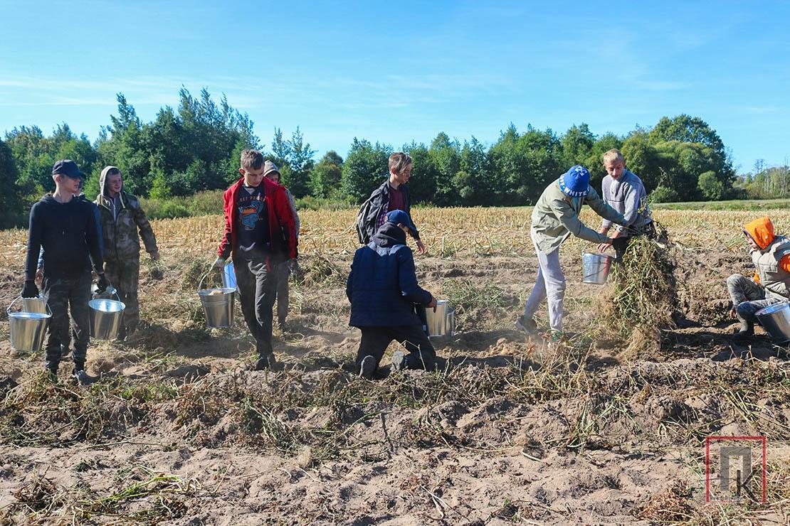 Надвор’е на мінулым тыдні, калі мы былі ў гаспадарцы, стаяла сухое і сонечнае. І гэта спрыяла рабоце. «Стараемся!», «У полі весела», «А мы ўжо сваю дзённую норму выканалі!», — азартна гаварылі хлопцы і спяшаліся напоўніць бульбай чарговае вядро.