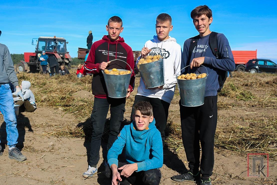 — Навучэнцы дзяржаўнага каледжа ўбіраюць у гаспадарцы бульбу кожны год. Без іх мы не ўправіліся б. Малайцы, стараюцца, — хваліў маладых памочнікаў начальнік навасёлкаўскага аддзялення Дзмітрый Лібоза. — Але пракантраляваць ды падказаць тое-сёе трэба. Гаспадарка закупіла для ўсіх вёдры. У поле падвозіцца вада — пітная і для мыцця рук. Ды і зарабіць змогуць. Бульба ўрадзіла нядрэнна: з кожнага гектара збіраем больш за 300 цэнтнераў. А садзілі мы яе на 36 гектарах сартоў «скарб», «гала», «джуавел».