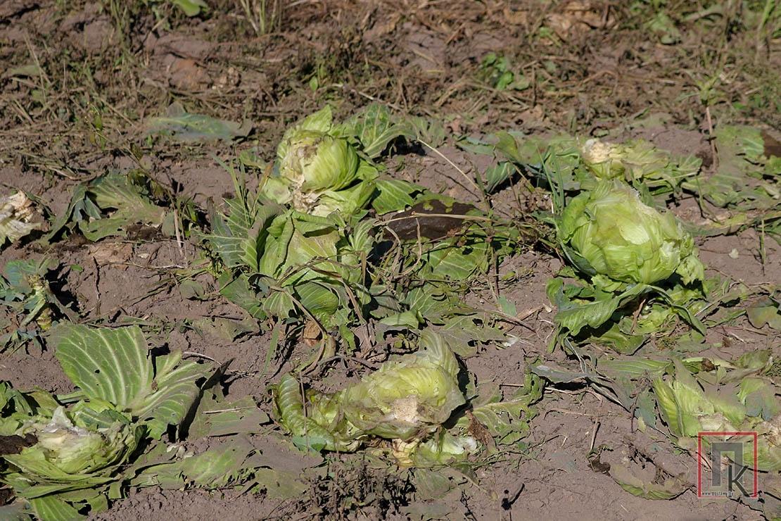 — А паглядзіце, што засталося: адна назва ад капусты, рэдзькі, цыбулі на пяро, перцу… А вось кроп, кабачкі і памідоры не з’елі. Відаць, не любяць, але ж усё здратавалі.