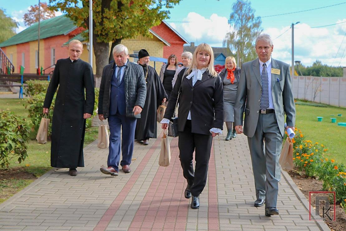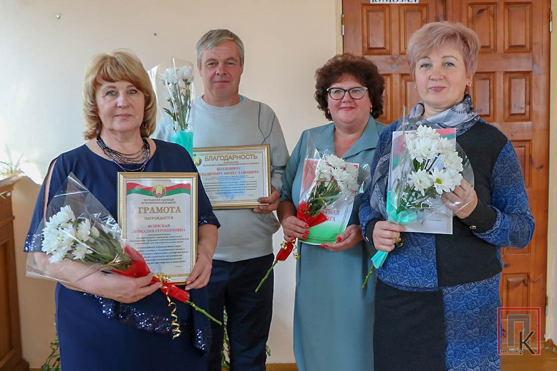 Госці звярнуліся да прысутных са словамі прывітання і падарункамі. Вера Астапенка ўручыла Ганаровую грамату камітэта па працы, занятасці і сацыяльнай абароне аблвыканкама медыцынскай сястры Наталлі Казловіч, Падзяку старшыні камітэта — санітару Уладзіміру Пазняку, перадала падарунак для былога дырэктара Паўла Паўловіча, а самой установе падарыла сертыфікат на 1 000 рублёў. Сертыфікат на 1 500 рублёў уручыў Алегу Дарафееву Пётр Курто, а ўзнагароды ад райвыканкама і раённага Савета дэпутатаў — загадчыцы склада Леакадзіі Ясінскай, санітару Уладзіміру Казловічу, спецыялісту па кадрах Ірыне Шкорнік.