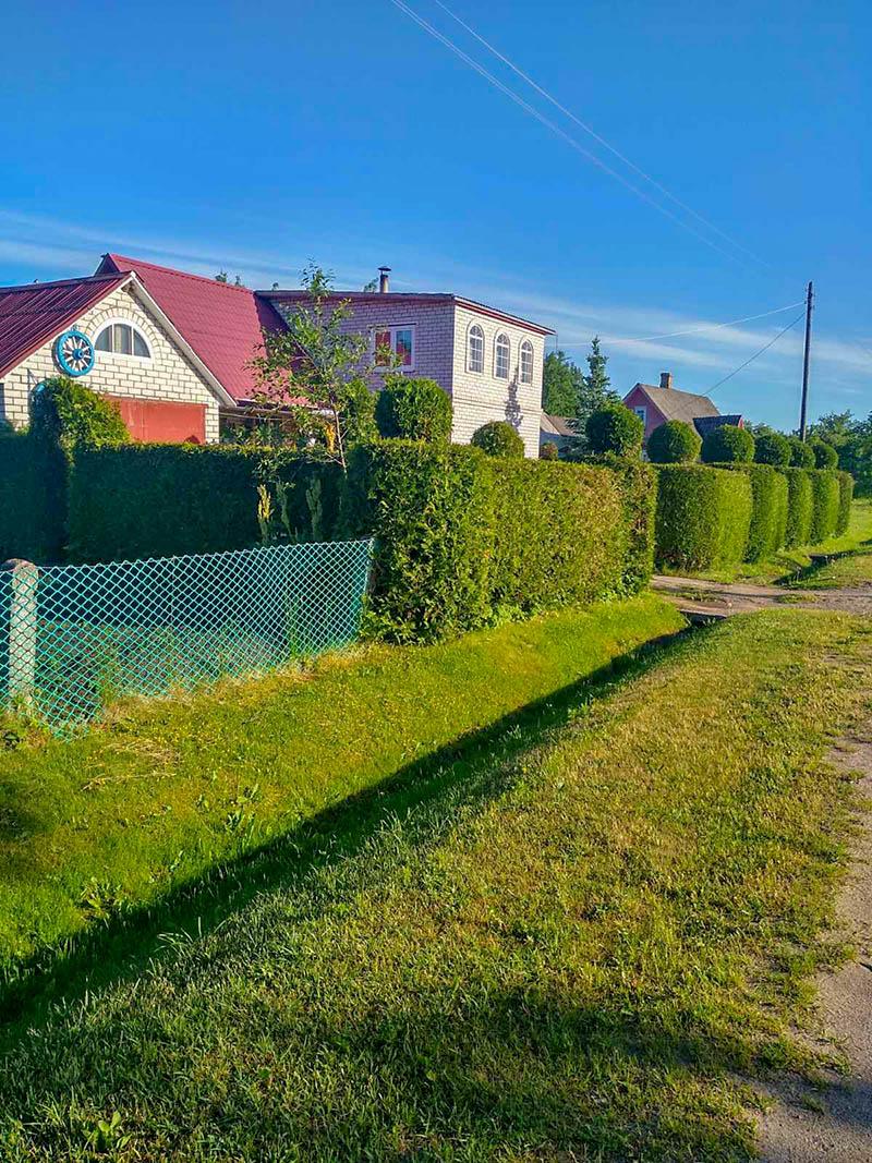 — У Голбіі я нарадзіўся і ўвесь час жыву ў бацькоўскім доме, толькі многае ў ім перарабіў,— расказваў Фёдар Сафронавіч. — Мы з Жэняй заўсёды імкнуліся ствараць прыгажосць. А калі ў канцы 90-х пабывалі ў Германіі і ўбачылі, як там людзі абуладкоўваюць прыдамавыя тэрыторыі, яшчэ больш узахвоціліся. У 2000 годзе купілі і пасадзілі 25 маладзенькіх туй. Заплацілі за іх 100 долараў. На той час гэта былі немалыя грошы. Затым самі пачалі вырошчваць іх з семак. Зрабілі дэкаратыўны басейн, садзім шмат кветак.