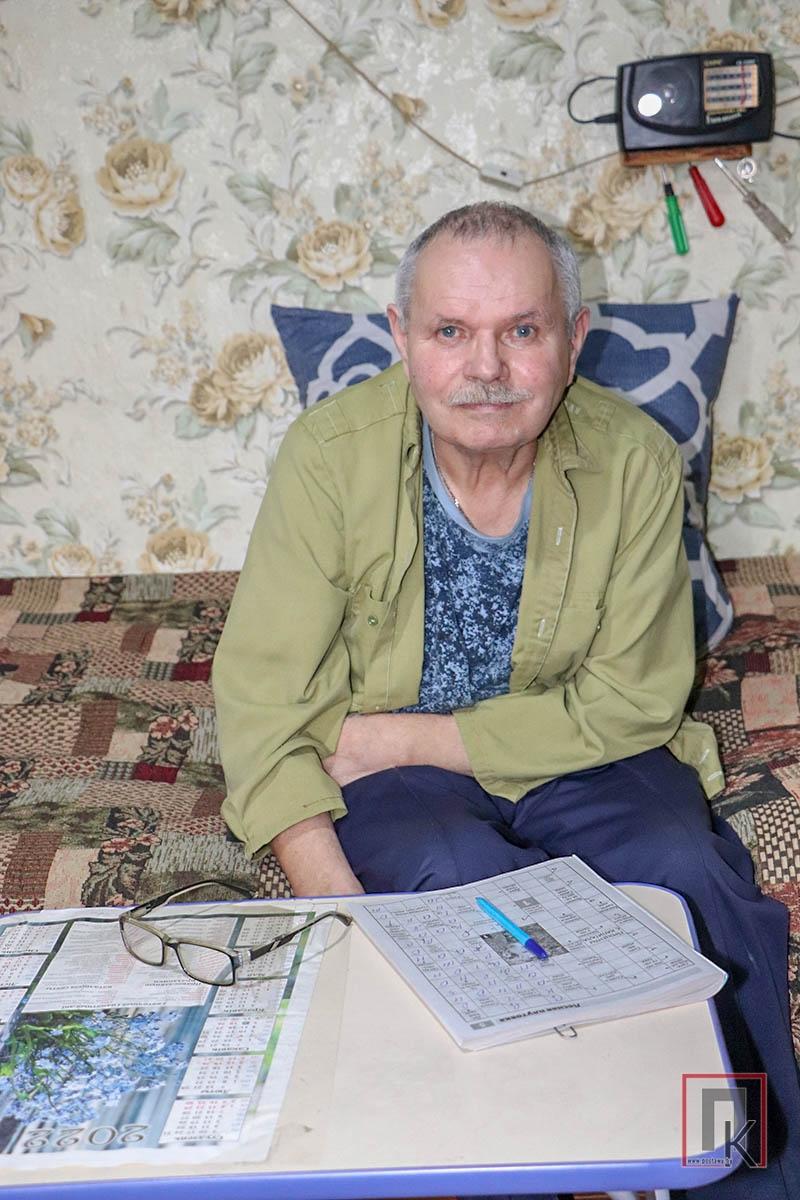 Беда в их семью пришла 8 лет назад, когда после инсульта хозяин утратил способность ходить. Заболевание парализовало левую руку, полностью пропало зрение в левом глазу, частично — в правом. По этой причине телевизор мужчина не смотрит. Лучшими его «друзьями» в плане времяпровождения стали очки, шариковая ручка и сканворды, которых в комнате впечатляющие стопки.