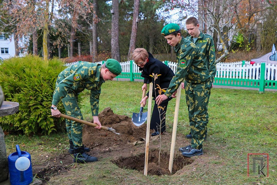 Перед посвящением юные пограничники и гости торжества собрались на участке перед школой и присоединились к республиканской экологической акции «Дерево героя». Они посадили молодой дуб в честь Героя Советского Союза Василия Киричука, чьим именем названа пионерская дружина школы.