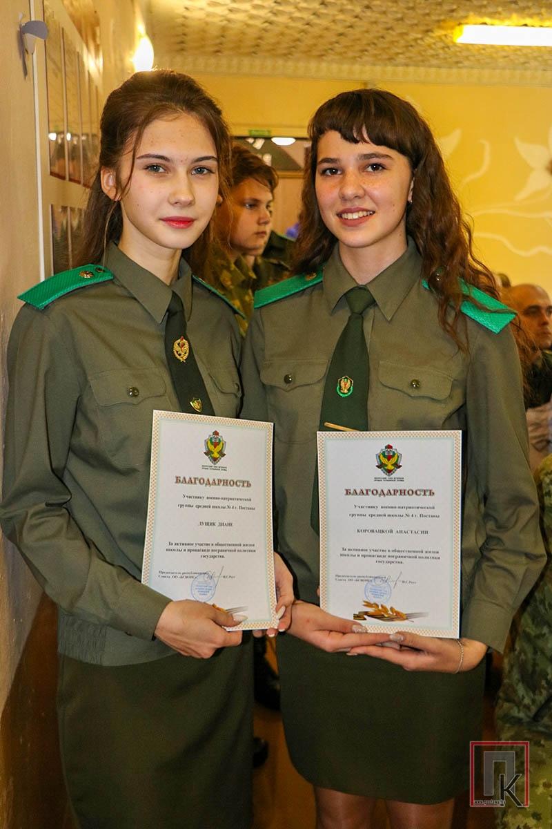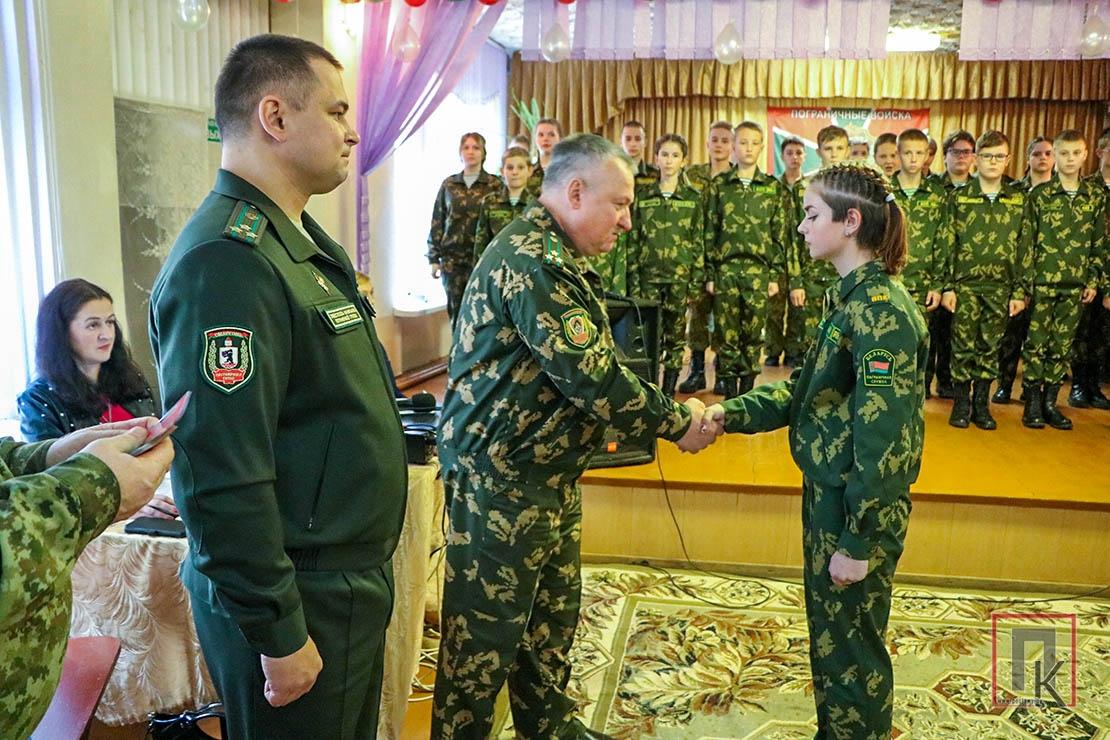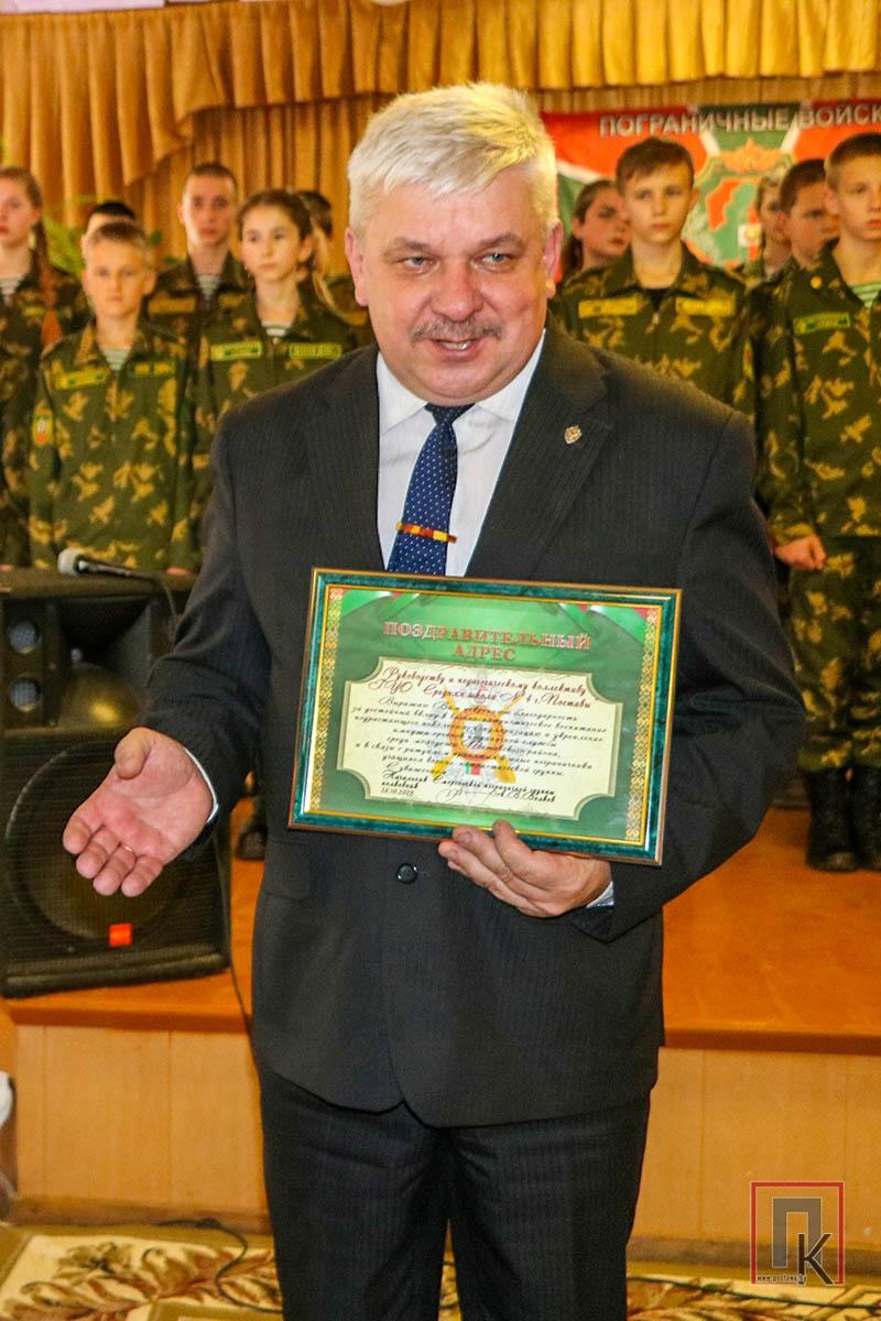 Игорь Иванович зачитал поздравительный адрес от имени начальника Сморгонской погрангруппы и вручил юным пограничникам сувенирную продукцию. Подарки преподнесли и представители Витебской областной общественной организации РОО «Патриоты Беларуси», районной организации РОО «Белая Русь», Республиканского совета Белорусского союза ветеранов органов пограничной службы. Приятным моментом стало и вручение грамот и благодарностей педагогам СШ №4, активистам военно-патриотической группы.