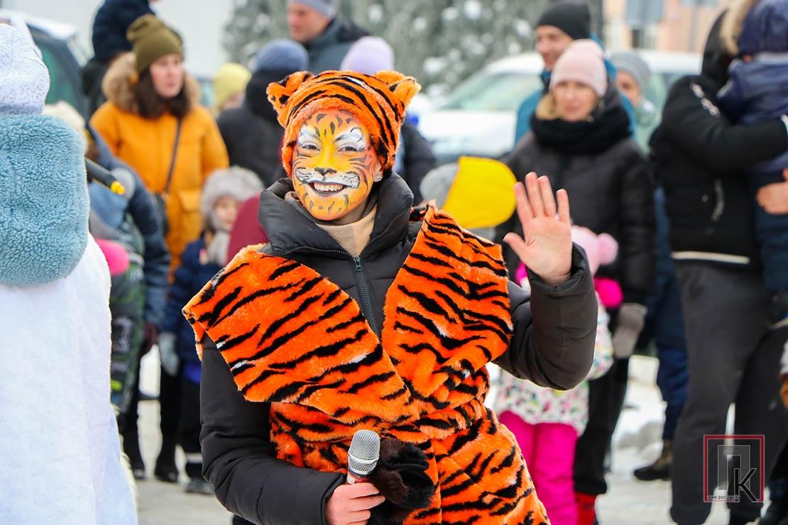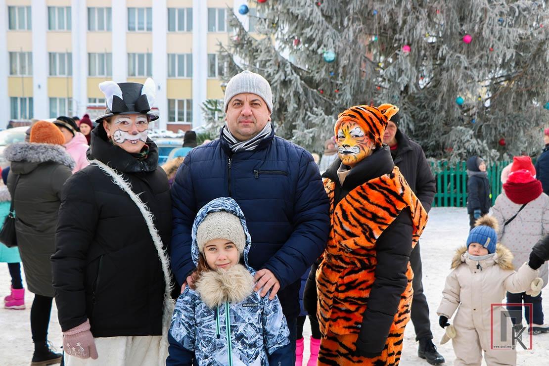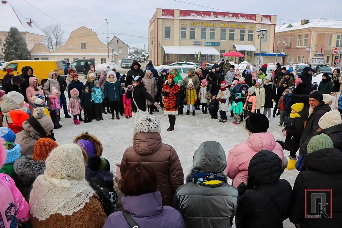 Разам з казачнымі персанажамі, гарэзлівым сімвалам адыходзячага года — Тыграм і будучага — Трусом дзеці дружна пляскалі ў далоні, гучна тупалі, скакалі, танцавалі і звонка клікалі добрага чараўніка Дзеда Мароза і яго ўнучку Снягурку. Прыемна было назіраць, як актыўна вадзілі карагоды і дарослыя, фатаграфавалі сваіх дзетак і шчыра ўсміхаліся. А пасля таго як усе дружна вымавілі чароўную замову, агні загарэліся не толькі на ёлцы, але і ў вачах усіх прысутных.