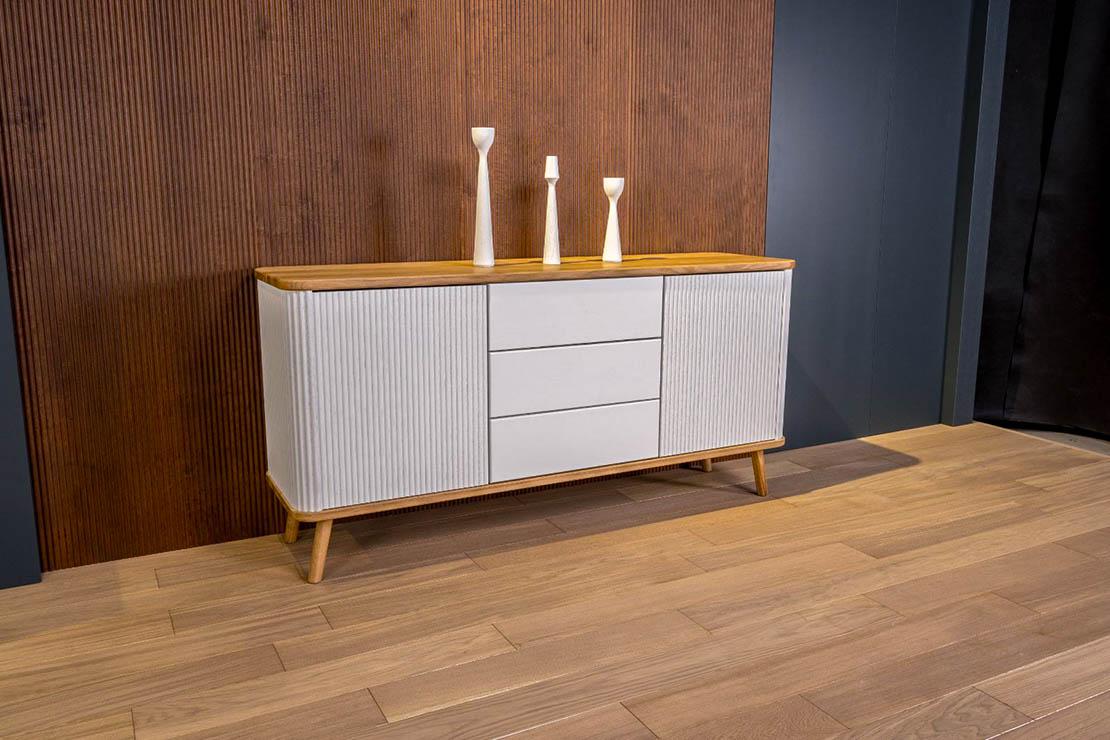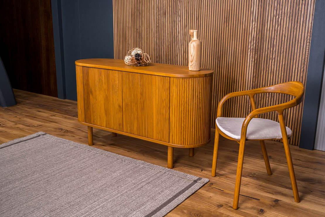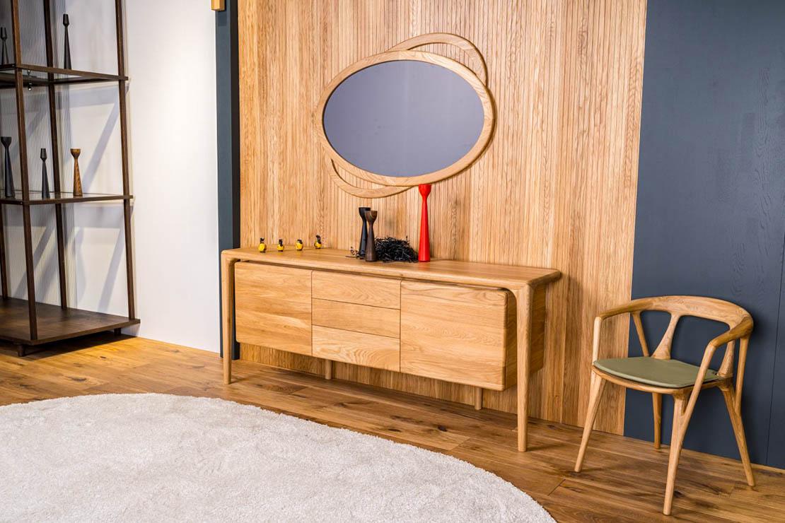 Мы привыкли к тому, что Поставский мебельный центр производит межкомнатные двери из ольхи, сосны, дуба разных модификаций, трёхслойную однополосную паркетную доску, верхний слой которой изготовлен из дуба. Но предприятие не стоит на месте и обновляет ассортимент. В прошлом году здесь выпустили первые образцы мебели из массива дуба и представили их на престижной международной выставке в Москве. В этом году отправились туда с обновлённой коллекцией.