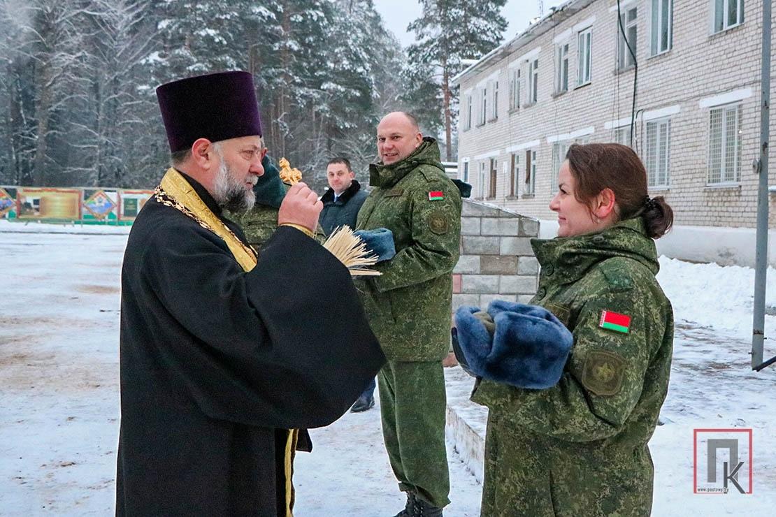Подполковник запаса Евгений Черняков поделился своими размышлениями о патриотизме, трудностях, выпадающих на долю каждого поколения, необходимости уберечь то, за что сражались наши предки. Настоятель храма Воскресения Христова г. п. Воропаево протоиерей Георгий Лакотка провёл исторические параллели о взаимодействии Церкви и «служивых», радуясь, что былая тесная связь возрождается, пожелал, чтобы благословение Господнее всегда пребывало с военными, и благословил их.