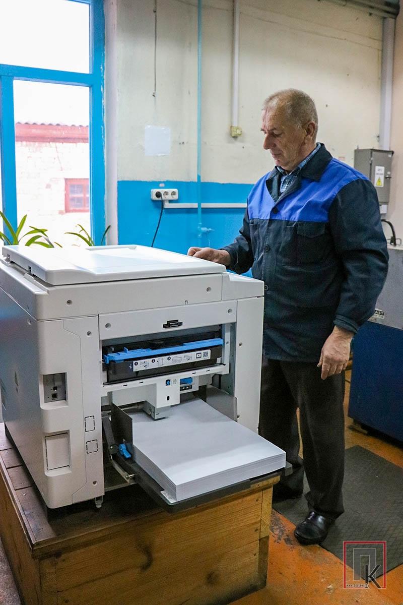 — Наша типография оказывает широкий спектр услуг. Чтобы идти в ногу со временем, повышать качество печати, по мере возможности обновляем оборудование, — рассказывал директор КПУП «Поставская типография» Евгений Кривичанин. — Относительно недавно приобрели «Ризограф». Скорость печати на нём составляет около 50 листов в минуту. Последнее наше приобретение — принтер для широкоформатной печати. Его аналог у нас был и раньше, но пришло время его заменить. С помощью новой техники изготавливаем баннеры различных размеров (единственное ограничение по ширине — не более 1,6 метра), сетки с рекламой на окна, аншлаги, стенды, в том числе объёмные, праздничные растяжки, фотографии на холсте, самоклеющуюся плёнку. Последнюю можно увидеть в основном на транспорте и стендах, но по факту она клеится на любую поверхность. Предлагаем и широкоформатную печать на бумаге, которую можно использовать для создания фотозон, и другую продукцию.