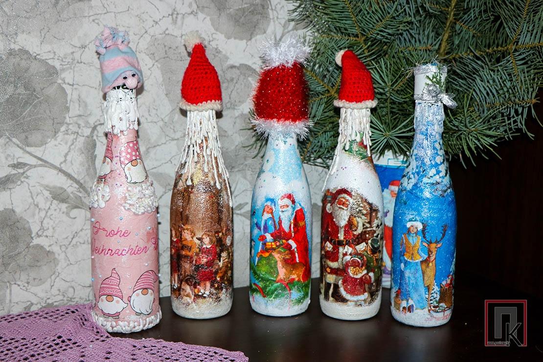 Да навагодніх свят Яніне Мар’янаўне асабліва падабаецца здзіўляць сваіх родных і сяброў незвычайнымі падарункамі. У гэтым годзе іх чакаюць арыгінальныя бутэлькі «ігрыстага», аформленыя ў навагодняй тэматыцы. Звязаныя жанчынай шапачкі, якія пакрываюць рыльцы бутэлек, выклікаюць асаблівае замілаванне.