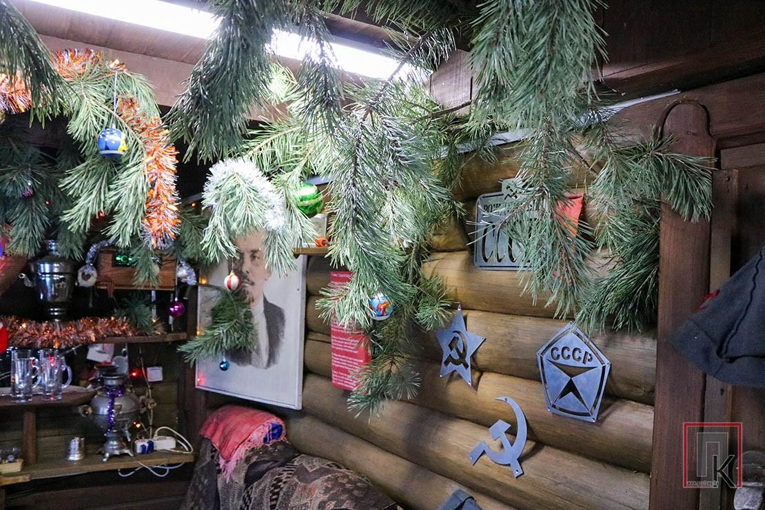 Из рассказа я узнала, что баня построена 7 лет назад. Постепенно в ней стали появляться различные экспонаты советских времён: портреты и бюст вождя-революционера, самовары, радиоприёмник, плакаты, знамёна, таблички, подстаканники… Колоритными акцентами в музейной экспозиции стали герб и гимн СССР.