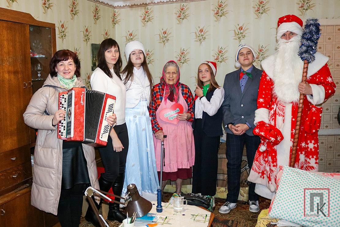Музычныя віншаванні пад акампанемет Зінаіды Сінгх пажылым дарылі ў касцюмах Дзеда Мароза і Снягуркі дзесяцікласнікі Андрэй Собаль і Вікторыя Бабіч, а таксама васьмікласнікі Дар’я Рамбальская і Аляксей Касарэўскі.