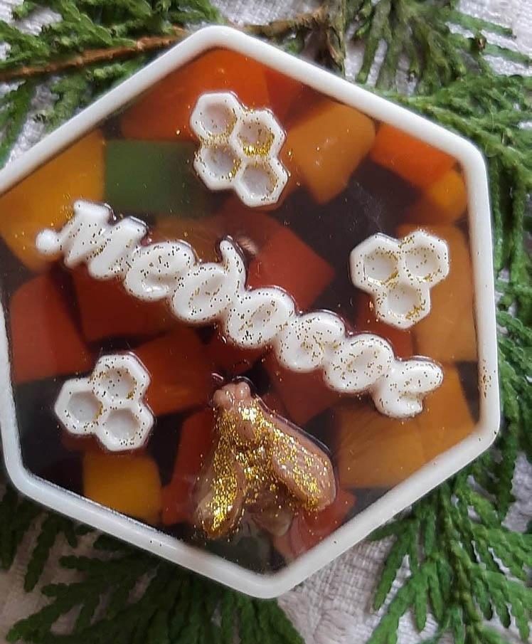 Але натхненне засталося. Без яго немагчыма было б аддаваць справе так шмат часу і ствараць столькі прыгажосці. Не толькі дзеля таго, каб зарабіць грошай, але і каб прынесці людзям радасць. «Мае ручныя вырабы выгадна адрозніваюцца ад фабрычных, — расказвала Марына Уладзіміраўна. — У іх няма хіміі. У якасці фарбавальнікаў выкарыстоўваю каву, сокі садавіны і агародніны, дабавак — рамонкі, календулу, мяту, аўсянае вотруб’е, араматызатары — харчовыя. Ну а самыя мае любімыя кампаненты — гэта, безумоўна, мёд і пропаліс.