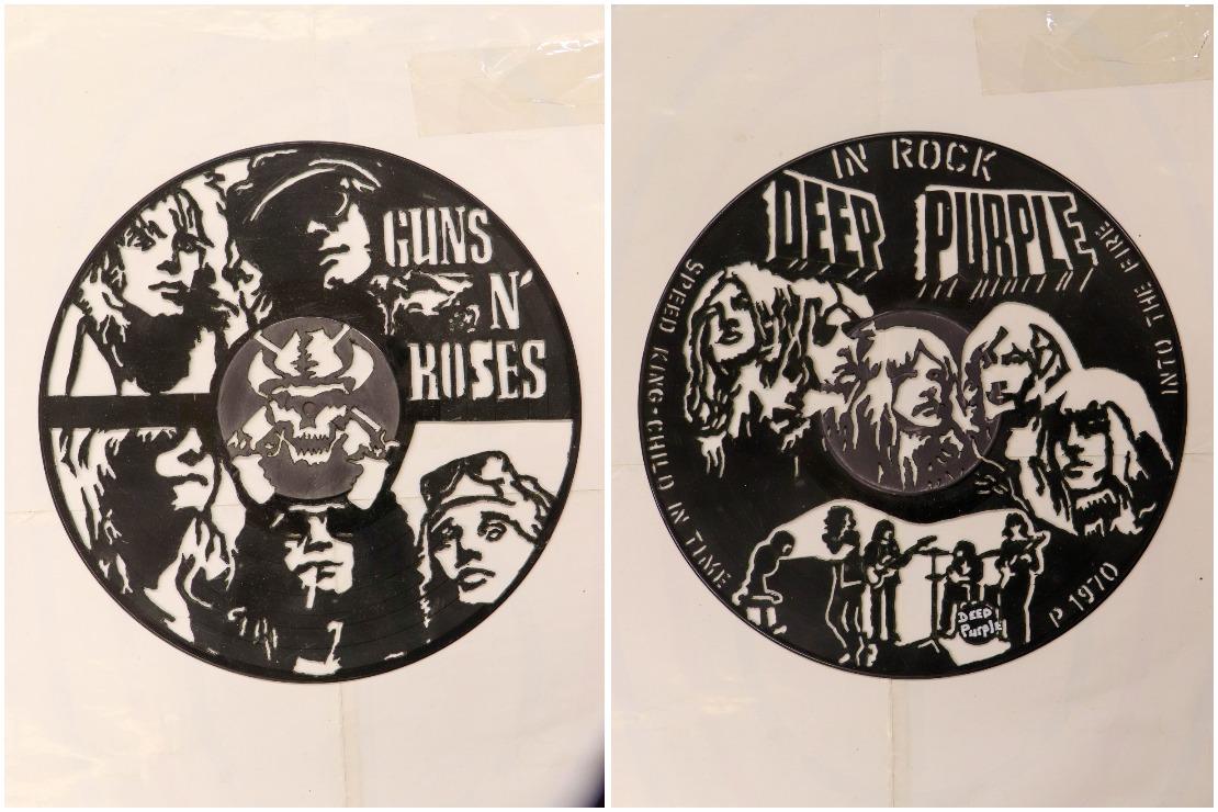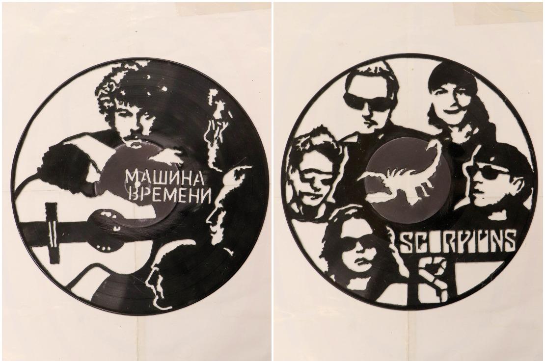 — Впервые такой вид творчества увидел в телепередаче, — рассказывал Александр Шорин. — Спустя время решил повторить. В этом помог всезнающий интернет, где можно найти идеи для таких работ. Стал искать изображения, которые нравятся, и «срисовывать» их на пластинки. Лишнюю часть винила сначала вырезал лобзиком, теперь использую бормашину. Да, это кропотливо, но сам процесс мне очень нравится. Есть в этом и образовательный момент: в поиске сюжета нахожу в интернете много фактов из истории разных групп.