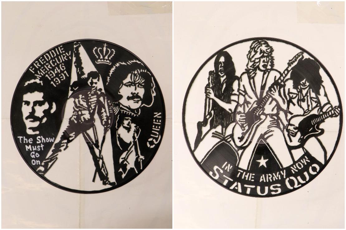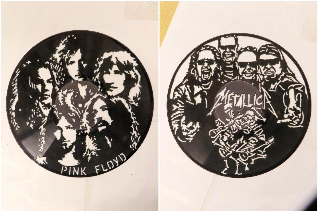 Прежде чем начать разговор с Александром Анатольевичем, рассматриваю десятки уже готовых, ювелирно выполненных им «рисунков». На большинстве из них изображены коллективы легендарных рок-групп: Pink Floyd, Metallica, Queen, Scorpions, Led Zeppelin, T.Rex и другие. Встречаются и портреты русскоязычных исполнителей — Лепса, Шуфутинского, музыкантов из групп «Пикник», «Машина времени» и т. д. В «виниловой» компании также белорусские «Песняры».