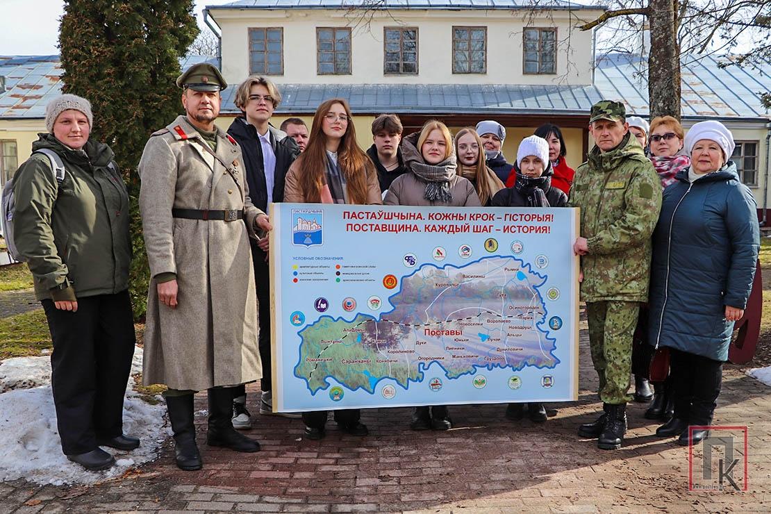 Напрыканцы лютага ў Паставах стартаваў раённы адукацыйна-краязнаўчы праект «Кожны крок — гісторыя». Яго галоўная мэта — натхніць дзяцей і дарослых вывучаць найбагацейшую гісторыю роднага краю. У тым, што гэта сапраўды атрымліваецца, пераканалася карэспандэнт «ПК» Іна Сняжкова, адправіўшыся з арганізатарамі праекта па другім распрацаваным маршруце.
