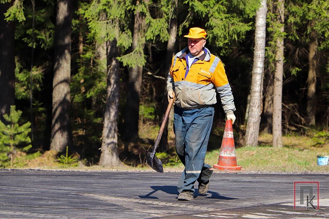 Фотофакт: Работники ДРСУ-132 и ДЭУ-33 меняют асфальт на повреждённом участке объездной дороги